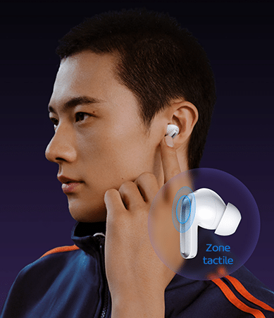 Sur le coté des écouteurs, Redmi a disposé une zone tactile gestuelle. Vous pouvez ainsi contrôler la musique, changer de mode, répondre à un appel, et contrôler facilement vos écouteurs d’une seule main.