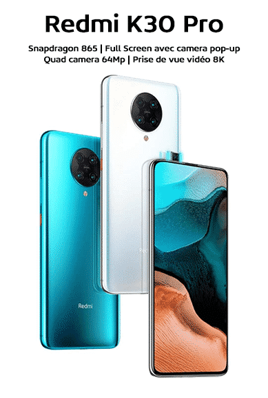 5G mais il existe plusieurs… SA (Standalone vrai 5G) et NSA (Non-Standalone, 5G sur cœur de réseau 4G) ! Et bien le Redmi K30 Pro inclus la prise en charge avec les deux… De plus, il intègre les fonctionnalités 5G Smart (Ajustement intelligent du réseau 5G pour assurer de bonnes performances et une meilleure gestion de l’énergie) et 5G MultiLink (agrégation Wifi + 5G). Pour le Wifi, il dispose du WiFi 6. Ainsi, grâce à cette nouvelle norme WiFi, le débit peut atteindre 9,6Gbit/s, soit une augmentation de 270% par rapport à la génération précédente. Il est également équipé du Super Bluetooth avec une distance de connexion supérieur à 400m, et le Bluetooth 5.1 permettant une transmission de données à faible latence. Le téléphone dispose en plus d’une puce NFC Multifonction, du GPS bi fréquence, un port USB-C, une prise Jack et un capteur infrarouge.