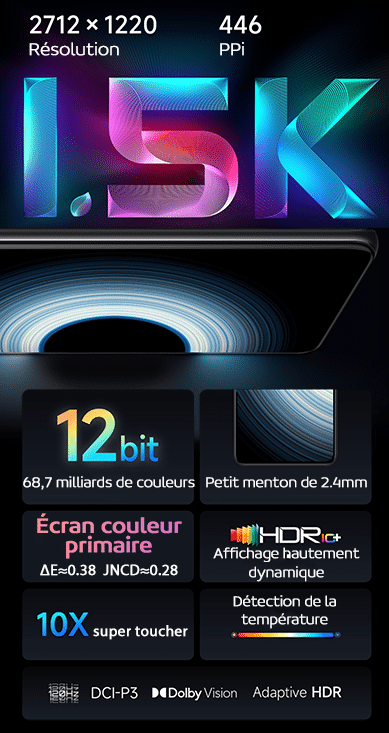 Le Redmi K50 Ultra dispose d’un grand écran 1.5K OLED de 6,67’’, avec un taux de rafraichissement de 120Hz et un taux d’échantillonnage tactile est de 480Hz ! L’écran dispose d’un contraste ultra élevé de 5 000 000:1, une certification HDR10+  et une large gamme de couleurs DCI-P3. La technologie de gradation PWM haute fréquence 1920Hz réduit considérablement l’inconfort causé par le scintillement stroboscopique aux yeux dans les situations de faible luminosité. L’écran est protégé par une vitre Corning Gorilla Glass Victus et le haut percé pour la caméra selfie de 20Mp, Sony IMX596.