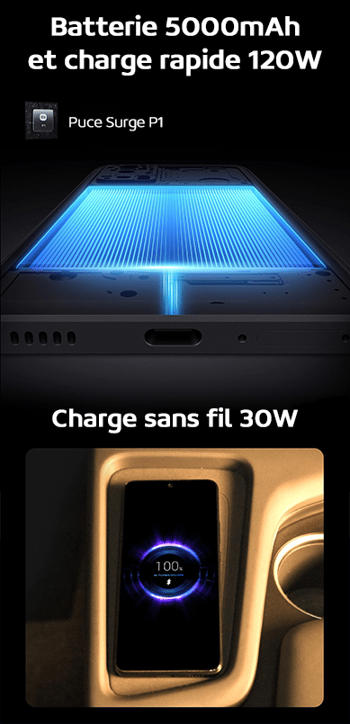 - Charge Rapide : Oui jusqu’à 120W