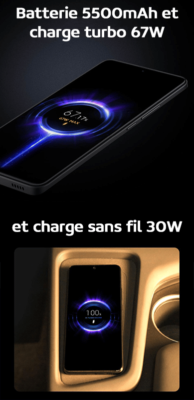 Le Redmi K60 intègre une batterie d’une capacité de 5500mAh avec la charge turbo filaire 67W. Il est équipé de la charge sans fil 30W qui arrive enfin chez Redmi.