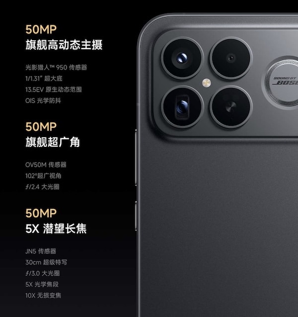 - 50 MP ultra grand-angle (OV50M, 102° de champ, f/2.4),
