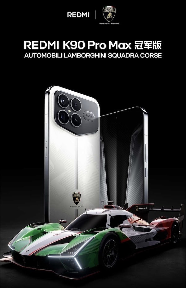 REDMI s’allie une nouvelle fois à Lamborghini Squadra Corse pour le K90 Pro Max Champion Edition, une version exclusive inspirée de la Lamborghini SC63, premier prototype hybride de la marque italienne. Son design reprend le motif en Y emblématique, un dos texturé façon fibre de carbone, et une finition mate à doubles lignes racing avec reflets métalliques. Le logo Lamborghini est incrusté sous plusieurs couches pour un effet 3D saisissant, tandis que l’expérience logicielle propose des animations, fonds d’écran et icônes thématiques aux couleurs de l’écurie. Livré avec une coque, un chargeur, un câble et des accessoires personnalisés, le REDMI K90 Pro Max Champion Edition est disponible en Chine en 16 Gb + 1 To au prix de ¥ 5 499 (environ 715 €).