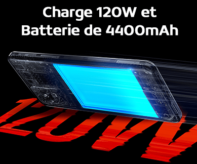 Niveau énergie, le Redmi Note 11T Pro+ est doté d’une batterie de 4400mAh. Il est équipé de la charge rapide filaire de 120W avec la puce Surge P1 autodéveloppée. Le rechargement à 100% est réalisé en seulement 19min et une demi-charge en 10min.