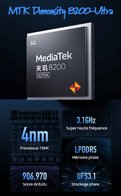 - Processeur CPU : MTK Dimensity 8200-Ultra
