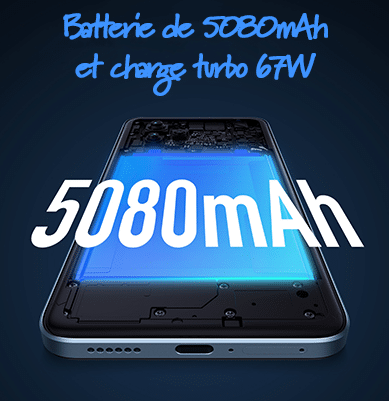 Redmi Note 12T Pro dispose d’une batterie de 5080mAh avec la charge turbo 67W. L’autonomie du téléphone peut atteindre 1,35 jours.