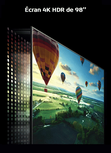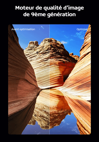 Cette nouvelle TV signée Redmi dispose d’un écran géant LCD 4K de 98’’ avec un ratio de 98,8%. Il vous offre une expérience de visionnement époustouflante ! Il offre une large gamme de couleur NTSC de 85%, une prise en charge HDR et un rétroéclairage dynamique de 192 niveaux. Le taux de rafraîchissement est de 60Hz avec un angle de vision de 178°. La puce MEMC intégrée peut fournir un rendu flou pour le contenu vidéo haute vitesse, tel que les émissions sportives, les jeux, … Elle est équipée de la 9e génération de moteur de qualité d’image, afin de rendre l’image plus lisse, les détails sont plus évidents.