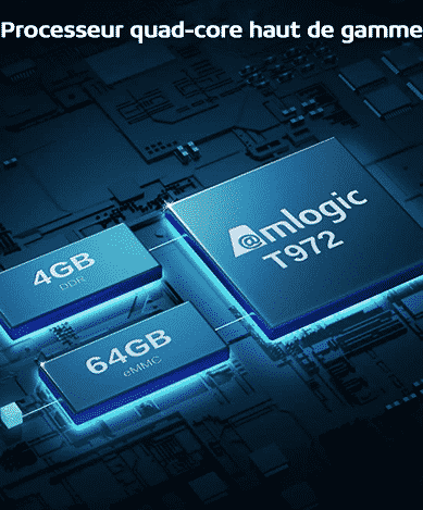 À l’intérieur, on retrouve un processeur 4 cœurs 64bits Amlogic T972 (12nm), avec un GPU Mali-G31 MP2, et couplé à 4Go de Ram et 64Go de stockage interne. Les performances sont puissantes et ainsi, le plaisir est grand…