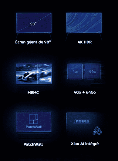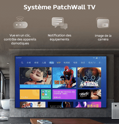La Redmi Smart TV Max 98’’ intègre l’assistant vocal Xiao AI permettant de contrôler votre téléviseur ou vos équipements domestiques intelligents à la voie. Ce nouveau téléviseur dispose de PatchWall pour l’interface, ce qui permet de faciliter la visualisation et le contrôle de votre domotique.