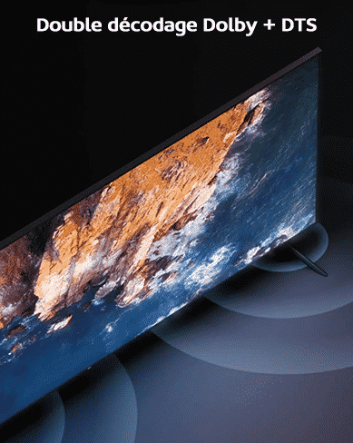 Niveau son, la télévision dispose de deux haut-parleurs 8W permettant d’obtenir un son excellent avec des basses fortes et des aigus exquis. Afin d’obtenir une expérience immersive, elle prend en charge du décodage Dolby et DTS.