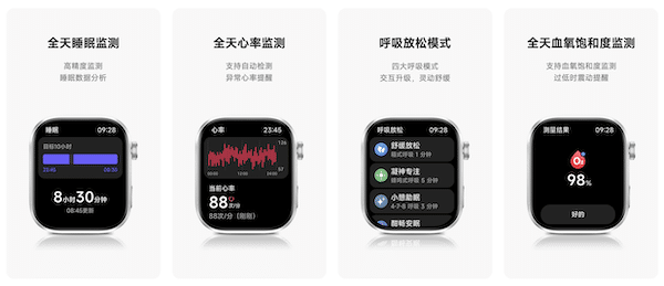 La REDMI Watch 6 embarque une gamme complète de capteurs : fréquence cardiaque, SpO₂, stress, sommeil et santé féminine. Le suivi du sommeil est désormais plus précis, avec détection automatique des phases de sommeil profond, léger et paradoxal. Le capteur SpO₂ mesure la saturation en oxygène 24h/24, avec alerte vibrante en cas de baisse anormale. La montre propose aussi un suivi du stress en continu, quatre modes de respiration guidée, et un partage des données de santé pour suivre à distance l’état de proches via l’application Mi Fitness.