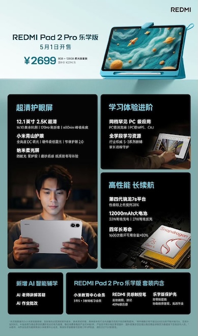 Écran 12.1” 2.5K 120Hz | Snapdragon 7s Gen 4 | Batterie 12000mAh + 33W | Écran certifié protection des yeux | Expérience proche PC | IA pour l’apprentissage