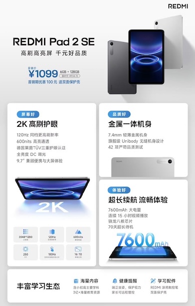 Écran 9.7” 2K 120Hz | Luminosité 600 nits | Batterie 7600mAh | Design métal unibody | Jusqu’à 15h de lecture vidéo | Certification TÜV protection des yeux