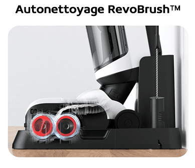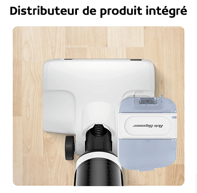 L’aspirateur-laveur intègre un distributeur de produit de nettoyage qui s’adapte automatiquement à votre sol. Une seule boite contient assez de produit pour 20 réservoirs d’eau propre ou jusqu’à 600min de nettoyage.