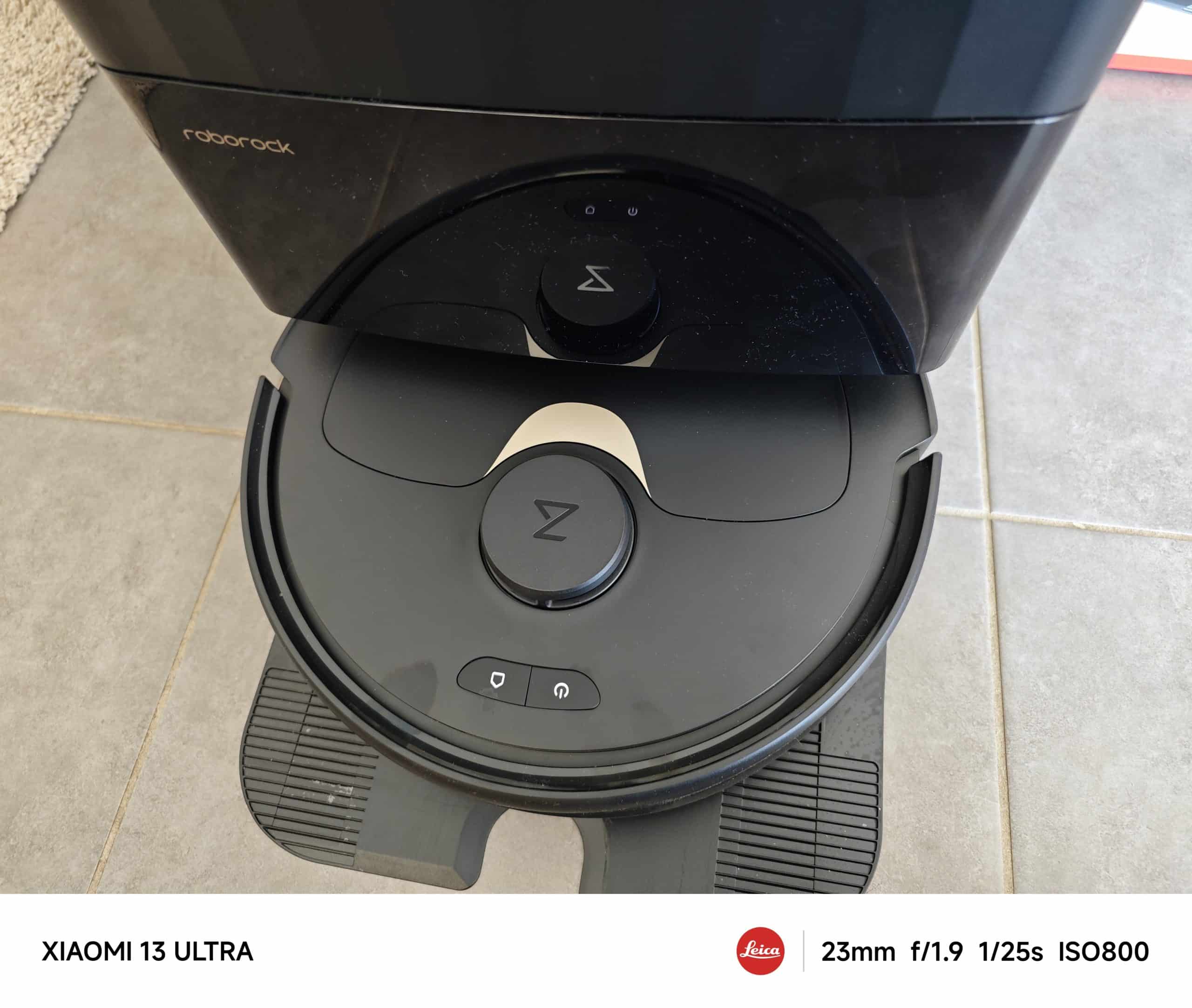 Roborock propose des stations de plus en plus développée et cette nouvelle base ne change pas les habitudes de la marque. La base permet le vidage de poussière automatique grâce à un sac d’une contenance de 2,7L permettant de récolter jusqu’à 7 semaines de saleté. On retrouve le lavage automatique du système de serpillière avec un double bac d’eau propre et sale intégré. Le bac d’eau propre permet également le remplissage automatique en eau de l’aspirateur. À la fin du nettoyage, les serpillières sont également séchées grâce à un système d’air chaud à 45°C évitant le développement de batterie et d’odeur désagréable. Et pour faciliter le nettoyage, le socle de nettoyage des serpillières est facilement détachable.