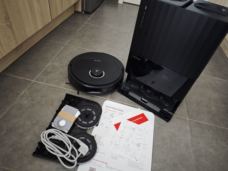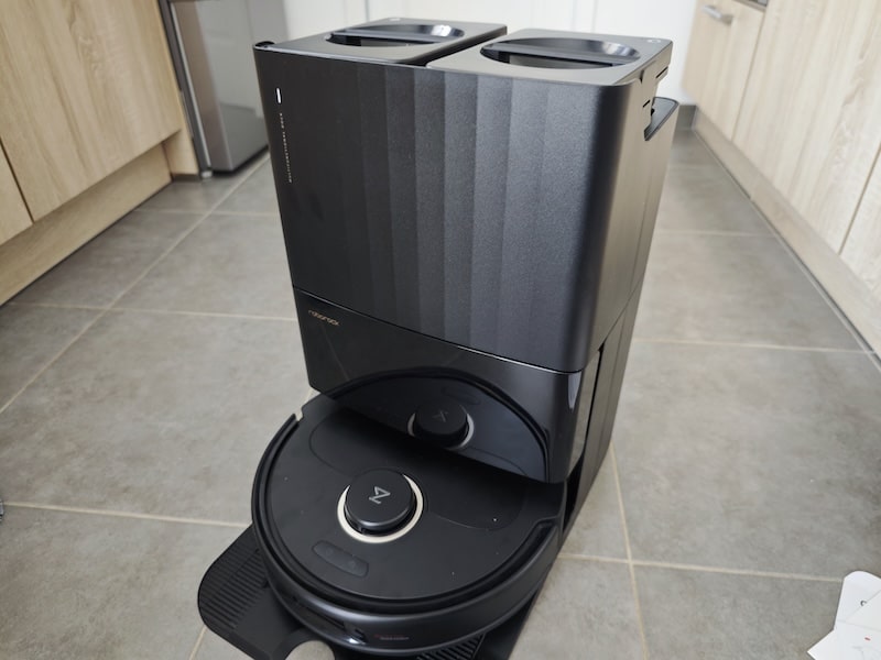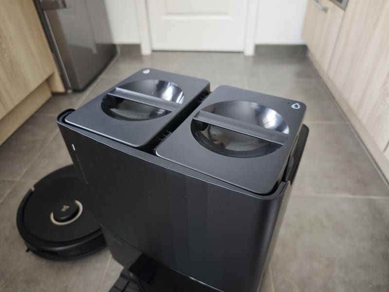 - Le vidage automatique en poussière permet de vider le robot directement dans un sac à poussière et de passer ainsi plus de 7 semaines sans vider la poussière