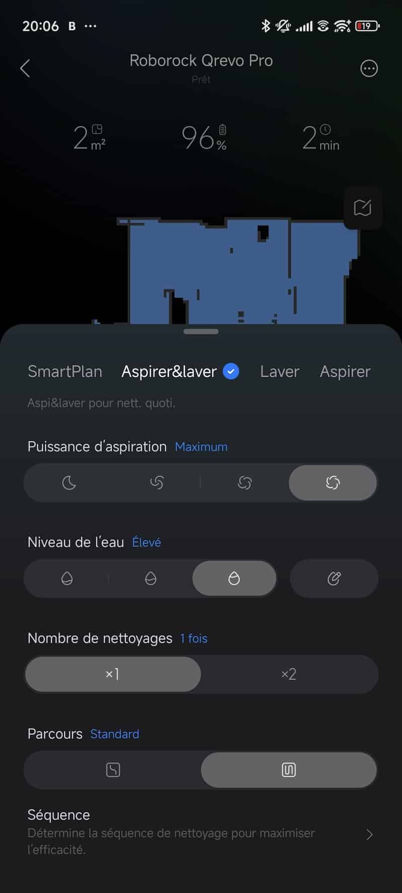 L’application Roborock permet de connecter le robot et créer la carte de votre maison. Vous n’avez pas grand chose à faire pour créer la carte de votre maison, le LiDAR sur le dessus du robot le fait pour vous et rapidement. Au fur et à mesure des nettoyages, la carte s’améliore ! Via cette application, vous pouvez choisir le style de nettoyage (aspiration seul, nettoyage seul, aspiration & nettoyage) et même SmartPlan pour laisser le choix à l’aspirateur pour un nettoyage intelligent via l’intelligence artificielle
