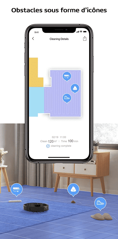 Les obstacles sont symbolisés sous forme d’icônes sur votre smartphone. Vous pouvez donc visualiser même à distance tous les soucis rencontrés et signalés. Ainsi vous rentrez chez vous en connaissant déjà les surprises qui vous attendent par terre.