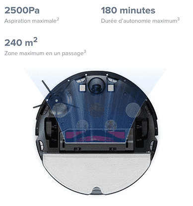 L’aspiration du Roborock S6 était de 2000 Pa et la marque a décidé d’aller plus loin ! En effet le Roborock S6 MaxV est 25% plus puissant avec une aspiration de 2500 Pa. Il ne laisse aucune chance à la poussière de rester au sol et va plus profond dans les moquettes ou tapis. Son autonomie maximum est de 180 minutes grâce à sa batterie de 5200mAh avec une zone de nettoyage jusqu’à 240m2. De plus, il est équipé du système Smart Top-up qui lui permet de retourner à sa base pour recharger juste assez sa batterie afin de terminer le nettoyage.