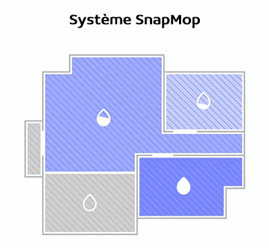 Le système SnapMop permet de laver vos sols. Vous pouvez nettoyer en mode serpillière en définissant les pièces autorisées ou interdites. Ainsi vos moquettes restent sèches !
