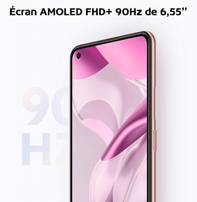 Le Xiaomi 11 Lite 5G NE propose un affichage sans compromis avec un écran AMOLED FHD+ 90Hz de 6,55’’. Il prend en charge la technologie TrueColor 10 bits (JNCD≈0.32, Delta E≈0.36) et la technologie Dolby Vision. La gamme de couleurs DCI-P3 permet une performance des couleurs mieux optimisée et une précision des couleurs optimale. Le HDR 10+ permet quant à lui permet d’obtenir des images dynamiques et plus contrastées. Le taux d’échantillonnage tactile est de 240Hz. L’écran est percé pour la caméra selfie de 20Mp et les bords sont fins de 1,88mm.