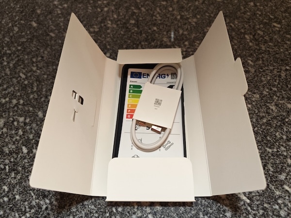 Note importante : Comme indiqué dans la boîte, l’adaptateur secteur n’est pas inclus dans cette génération, ce qui est une tendance chez les flagships.