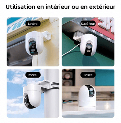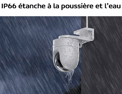 La caméra est conçue pour fonctionner en extérieure et elle est donc étanche à la poussière et l’eau avec la certification IP66. La marque a également intégré des moteurs afin de pouvoir visualiser tout autour. Elle dispose ainsi d’un angle de vision horizontal à 360° et angle de vision vertical à 160°.