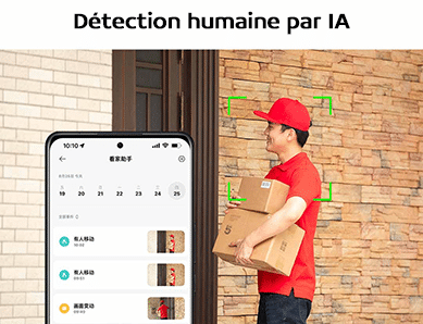 En utilisant une nouvelle génération d’algorithme IA de reconnaissance humaines, lorsqu’un visage apparaît à l’écran, une vidéo d’alarme est automatiquement enregistrée et un push est envoyé sur votre téléphone. Lorsque la caméra détecte une intrusion dans la zone de surveillance, elle envoie une alarme sonore et des lumières clignotantes haute-fréquence, ce qui a un effet dissuasif.