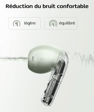 Les écouteurs sont capables d’identifier la structure du conduit auditif, l’insertion et le bruit environnemental afin d’ajuster la profondeur de réduction du bruit en temps réel. On obtient donc des écouteurs semi-intra-auriculaire avec une réduction du bruit confortable.