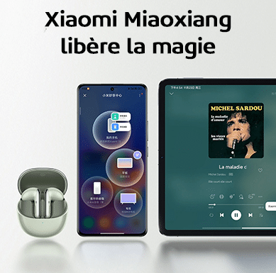 Désormais les écouteurs ont rejoint la fonction Xiaomi Miaoxiang permettant une connection facile avec votre téléphone, tablette, … Le Xiaomi Miaoxiang Center est disponible sur MIUI en ROM chinoise. La magie du « glissé et connecté » arrive pour un transfert facile et rapide de vos écouteurs sur tous les appareils.
