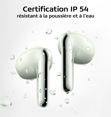 Une zone tactile est présente en permettant au toucher de réaliser des fonctions. Les écouteurs peuvent réaliser le contrôle de la musique, du contrôle des appels … Afin de profiter de votre musique lors de vos séances de sport ou balade en plein air, les écouteurs sont certifiés IP54 (résistant à l’eau et la poussière).