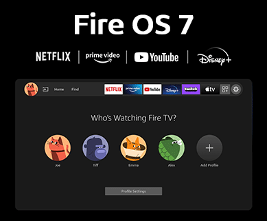 Le tout dernier OS d’Amazon (Fire OS 7) pour les TV est donc sur la nouvelle TV de Xiaomi vous permettant d’accéder à tous vos contenus préférés (Netflix, PrimeVidéo, Disney+, Youtube…). Téléchargez simplement vos applications depuis l’Amazon Appstore. Il est également possible de créer votre menu à votre image ou protéger la sécurité de vos enfants avec les profils personnalisés.