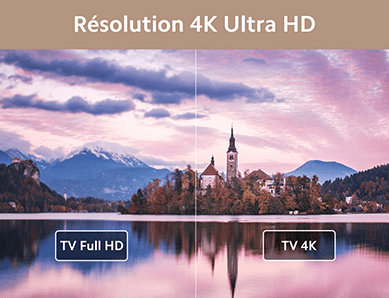 L’écran dispose d’une qualité d’image 4K HDR permettant d’obtenir une image naturelle et réaliste. Le taux de rafraîchissement est de 60Hz avec un angle de vision de 178°. Il intègre la technologie MEMC intégrée peut fournir un rendu flou pour le contenu vidéo haute vitesse, tel que les émissions sportives, les jeux, …