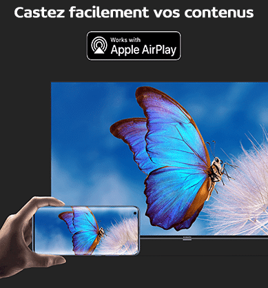 Le nouveau téléviseur Xiaomi Fire TV F2 vous permet d’afficher vos contenus de vos appareils Android, iOS et Mac facilement grâce à Miracast et AirPlay.