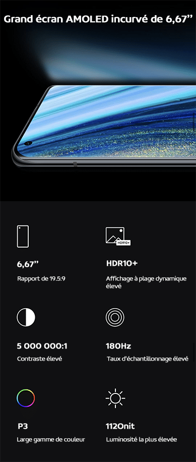 - Taille écran : 6,67’’ incurvé
