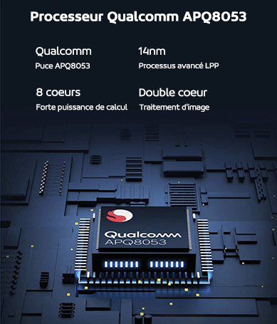 Xiaomi a intégré un processeur Qualcomm APQ8053 à 8 cœurs, dont 2 cœurs pour le traitement d’image avec un processus de gravure de 14nm. Les performances sont solides et permettent d’obtenir des images 4K et une qualité de son claire. Les réunions à distance sont ainsi appréciables.