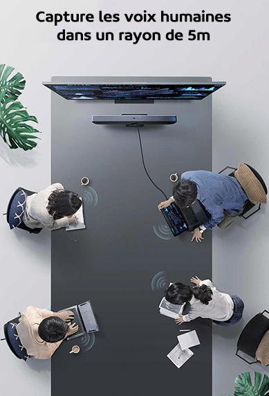 La marque a intégré une puce de réduction de bruit DSP indépendante, aidé d’un algorithme intelligent IA. Il reconnait facilement les voix humaines tout en supprimant la réverbération et en éliminant le bruit commun. Le Xiaomi Mi Audio and Video Conference Speakers restaure avec précision les discours de votre réunion.