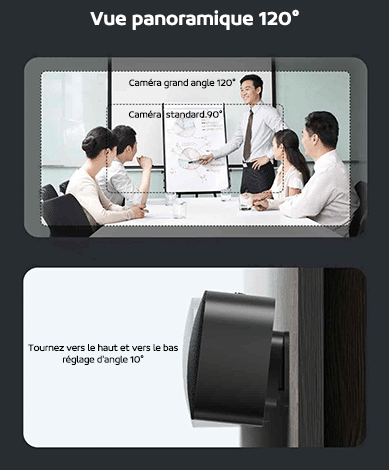 La caméra HD Sony grand angle 120° offre une vue panoramique de la réunion avec un zoom 8x. Le réglage mécanique de l’angle vertical 10° permet de vous concentrer facilement sur l’image principale.