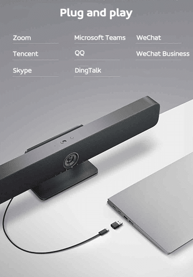 Xiaomi permet une connexion plug and play en USB-C ou USB-A. Pas la peine de se torturer avant la réunion a réaliser des tests pour être prêt au moment opportun. De plus il est compatible avec de nombreux systèmes d’exploitation (Windows, Mac Os, ..) et de nombreux logiciels de conférence, sans étapes fastidieuses d’installation.