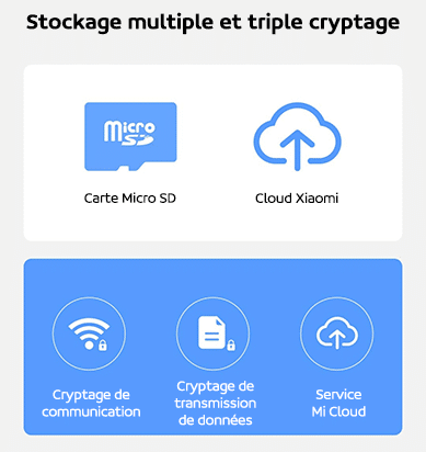 Pour l’enregistrement des vidéos, vous disposez de plusieurs choix. En effet, la caméra dispose d’un port micro SD mais elle est également compatible avec le stockage dans le Cloud de Xiaomi. La marque a bien entendu mis en place un triple cryptage afin de protéger la confidentialité des utilisateurs !