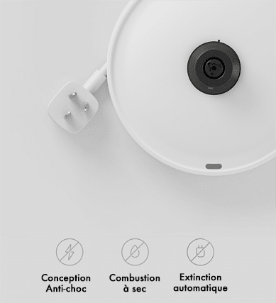 Pour tous les produits Xiaomi, la sécurité est primordiale. La bouilloire dispose d’un couvercle qui s’ouvre à l’aide du bouton. Le couvercle s’ouvrira lentement jusqu’à 30°, ainsi les perles d’eau chaude accumulées ne vous éclabousseront pas, évitant tous risquent de brulures. Une triple protection a été mise en place :