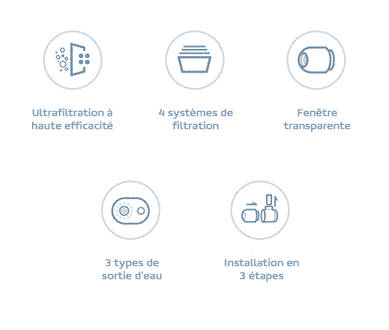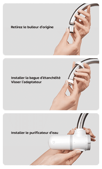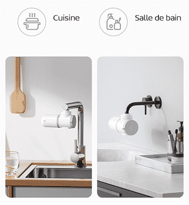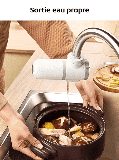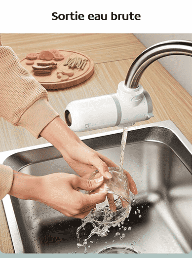 Xiaomi a intégré dans ce mini purificateur 3 types de sortie d’eau. En effet, vous disposez d’une sortie eau propre pour l’eau de cuisson par exemple, d’une eau préfiltrée pour le lavage des fruits et pour finir une eau brute pour le nettoyage de la vaisselle.