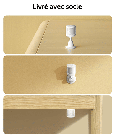 Comme le modèle de la marque Aqara, il est vendu avec un socle permettant de vous offrir une plus grande variété de méthodes d’installation. Avec ce socle, une fois placé et collé, vous pourrez toujours modifier l’inclinaison, ou encore le tourner…