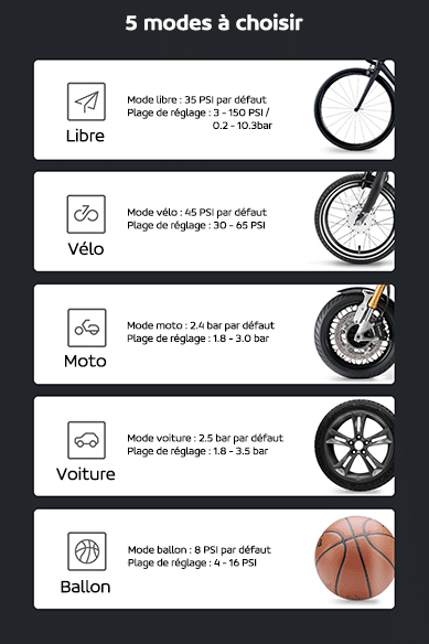5 modes sont préréglés. La plage de pression d’air est limitée dans chaque mode en fonction du type de gonflage afin d’éviter le surgonflage. Xiaomi a misé sur la sécurité et la facilité et ainsi nos ainés pourront facilement l’utiliser.