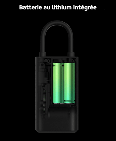 Deux batteries au lithium 18650 avec une capacité de 2000mAh permettent de fournir l’énergie utile pour l’utilisation du compresseur. Aucune alimentation externe n’est nécessaire pendant le fonctionnement.