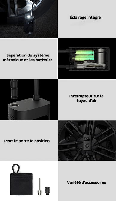 Le mini compression dispose d’un grand écran digital qui permet de régler la valeur de la pression d’air en fonction de la pression requise avant gonflage. Il s’arrêtera automatiquement à la valeur réglée lorsque le gonflage est terminé.