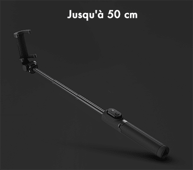 Sa fonction première étant quand même d’être une perche à selfie, elle peut aussi s’utiliser en monopode. Grâce à son bras extensible, elle peut mesurer jusqu’à 50 cm une fois dépliée. Néanmoins, elle reste assez compacte, pour la transporter, car une fois rétracté elle ne mesure que 19 cm.