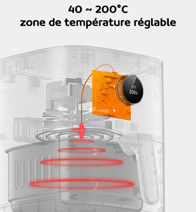 La large plage de température de 40 à 200°C peut être ajustée de façon précise. En plus de la fonction friteuse, elle dispose de plein de fonctions comme la fermentation de yaourt à température constante, la décongélation à basse température, mais bien sûr également la possibilité de cuire des légumes divers, de la viande, et même des gâteaux…