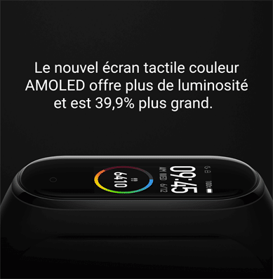 La Hey+ était sortie l’an passé avec un design ressemblant au Mi Band 3 avec un écran couleur… De nombreux fans voulaient y passer, mais ce bracelet était réservé au marché chinois. Xiaomi a donc mis à jour son Mi Band en écoutant ses Mi Fan et en y apportant la couleur dans l’écran. Ce nouvel écran couleur AMOLED augmente non seulement la luminosité, mais également la surface d’affichage (39,9% de plus). 5 bracelets de couleurs différentes seront disponibles et vous disposerez d’un choix de 60 thèmes.