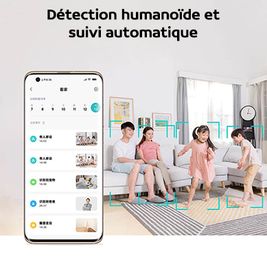 La caméra adopte une conception pan-tilt à deux moteurs, un angle de vision horizontal de 360° et un angle de vision vertical de 118°. Contrôlez facilement la caméra depuis l’application Xiaomi Home.